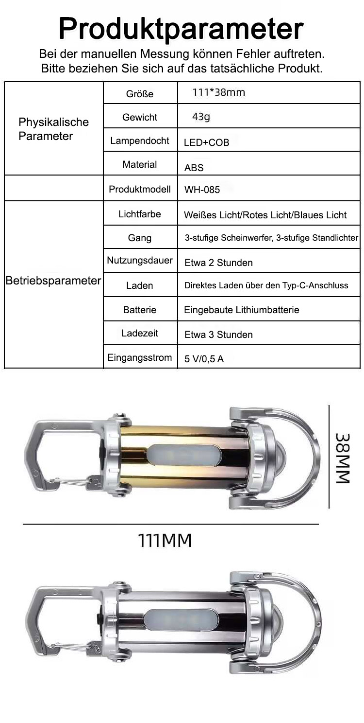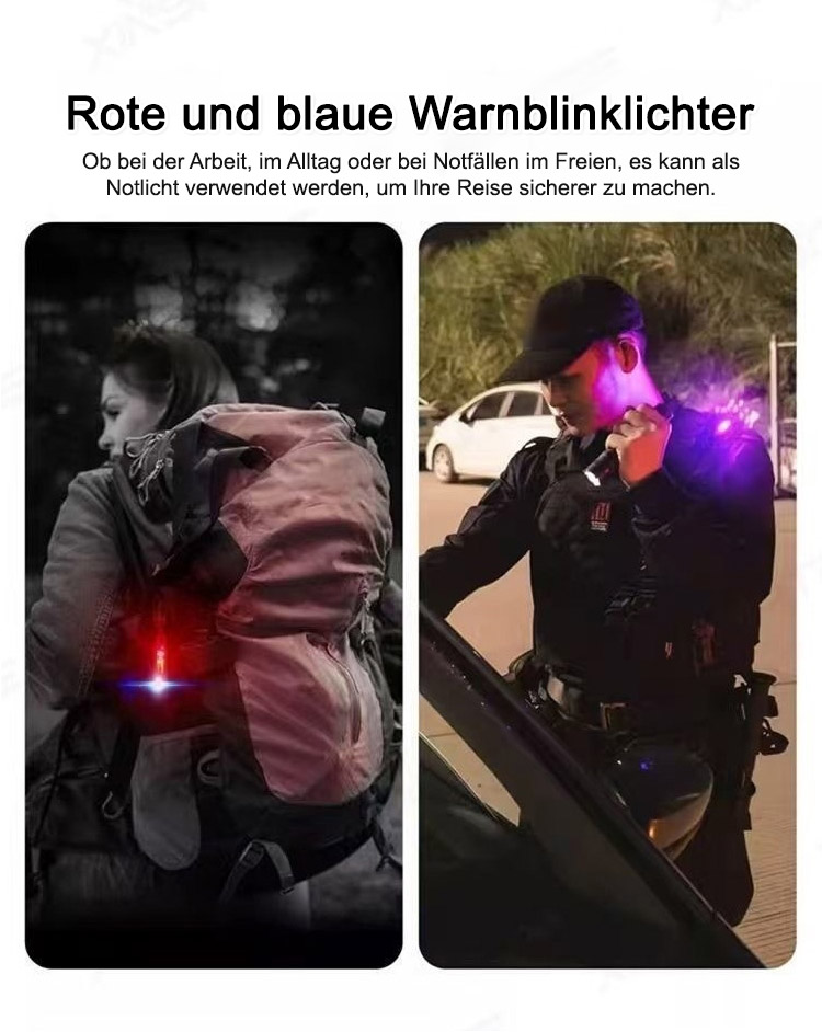 ⚡ 20× heller als Handy + Blaulicht-Rotlicht-Blinker – im Notfall Signal oder Selbstverteidigung. Notfall-Powerbank inklusive.